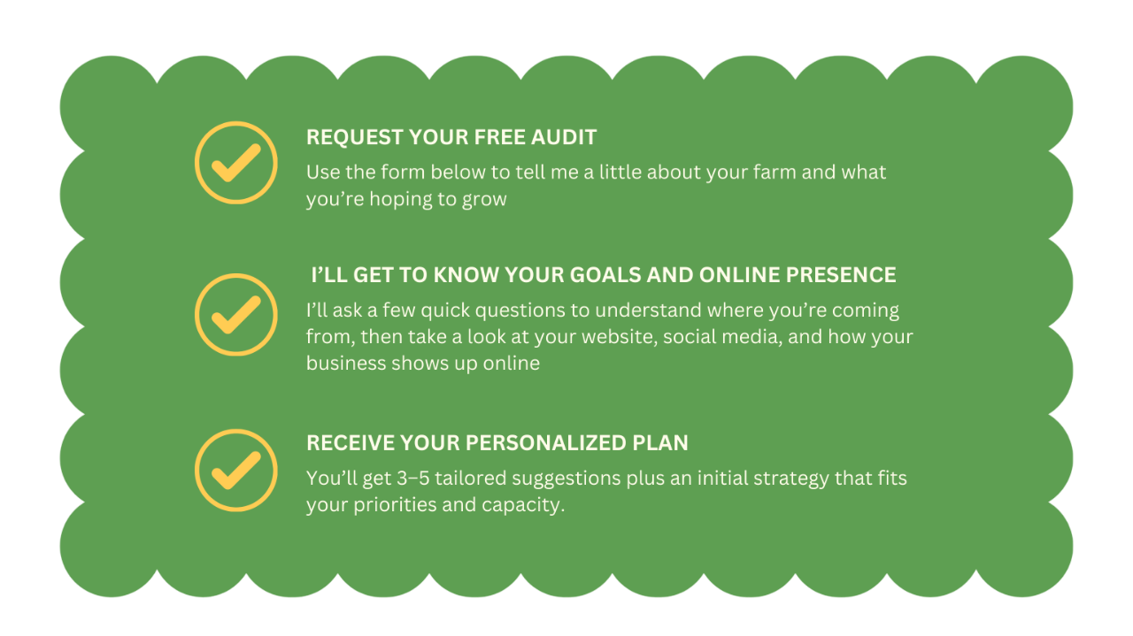 We’ll review your online presence, from website to Instagram, and send you 3–5 personalized suggestions to grow your visibility and sales.